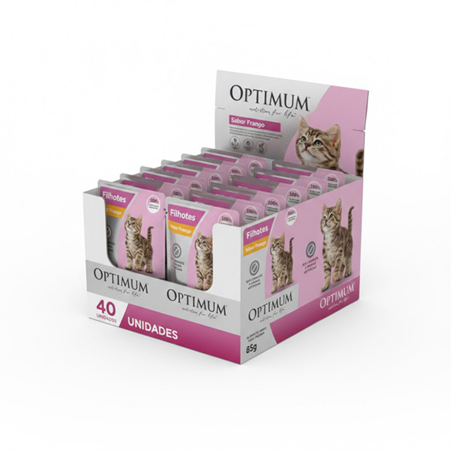 Kit Ração Úmida Optimum Sachê para Gatos Filhotes Frango 40 Unidades