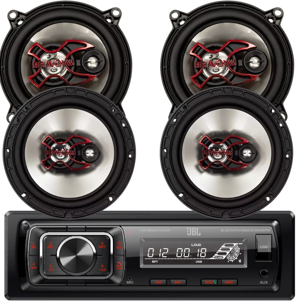 Kit Rádio Jbl Som Automotivo + Alto Falante Bravox 5 E 6 Pol