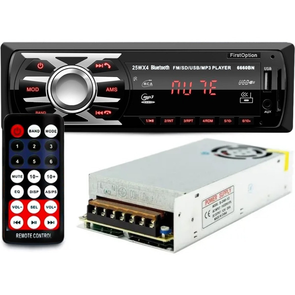 Kit Radio Som Automotivo Bluetooth Usb Fm + Fonte 30 Amperes