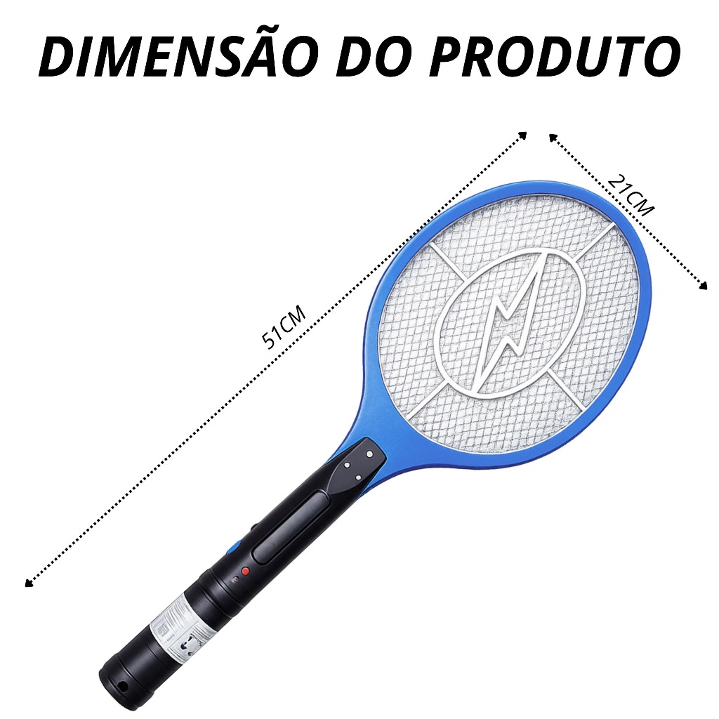 Raquete Elétrica Recarregável – 51 cm Elimine mosquitos, pernilongos e outros insetos voadores de forma rápida e prática com a raquete elétrica recarregável. Ideal para usar em casa, apartamento, quintal, área gourmet, camping e viagens, ela combina alta eficiência com uso simples: é só ligar e encostar no inseto para a tela elétrica agir. Principais benefícios Eficiente contra insetos voadores: ajuda a combater mosquitos e pernilongos sem sujeira. Recarregável: dispensa pilhas, mais economia no dia a dia. Leve e fácil de usar: formato de raquete com pegada firme para maior controle. Mais alcance: tamanho ideal para atingir insetos com facilidade. Design moderno: disponível em cores variadas Características do produto Tipo: Raquete elétrica elimina insetos Alimentação: Recarregável (acompanha carregador) Botão liga/desliga: Sim Indicação de uso: Ambientes internos e externos (uso doméstico) Dimensões (conforme imagem) Comprimento total: 51 cm Diâmetro da área da raquete: 21 cm Conteúdo da embalagem 1x Raquete elétrica