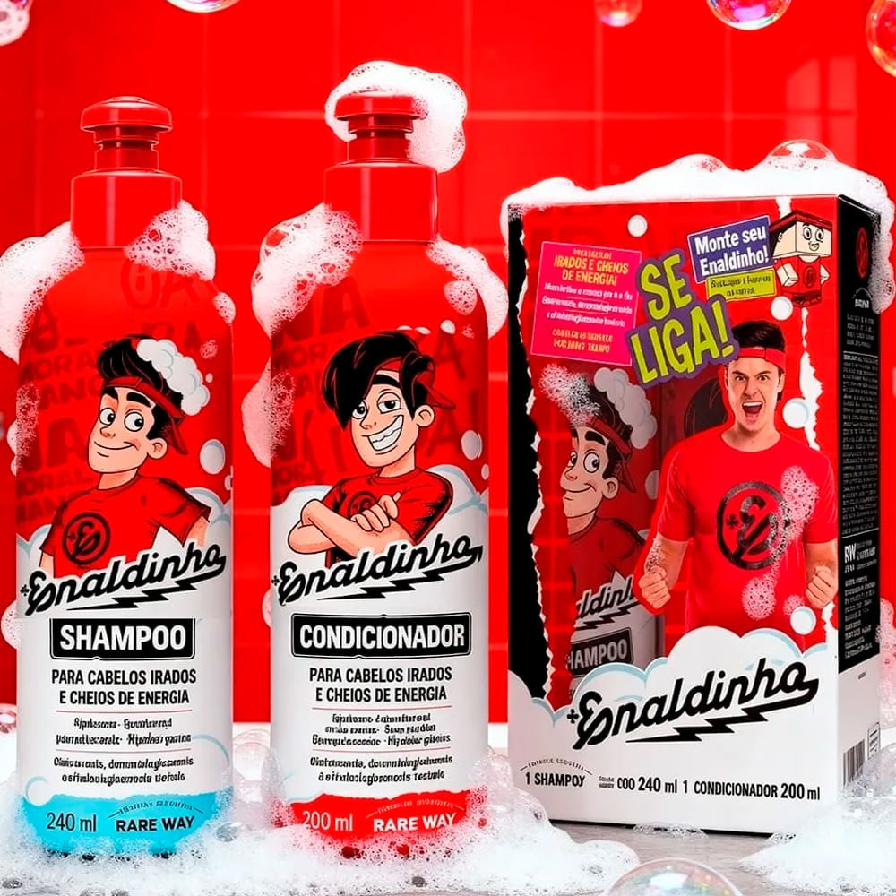 O Kit Rare Way Shampoo + Condicionador Enaldinho é a solução perfeita para quem busca cabelos saudáveis e cheios de vida. Composto por um shampoo e um condicionador, este conjunto proporciona uma limpeza suave e eficaz, combinada com um condicionamento profundo. O shampoo remove impurezas e resíduos do cabelo, enquanto o condicionador age para desembaraçar e nutrir, deixando os fios macios e sedosos. Com uma delicada fragrância de Enaldinho, o uso regular do kit garante um cabelo radiante e perfumado. Ideal para todos os tipos de cabelo, este kit é uma excelente escolha para o cuidado diário dos seus fios. Beneficios:Praticidade na hora do banho;Dermatológicamente testado;Limpeza suave dos cabelos e corpoModo de usar: Shampoo: Aplique-o nos cabelos molhados e massageie suavemente os cabelos e o couro cabeludo,Enxágue bemCondicionador: Aplique-o no cabelo úmido e espalhe uniformemente por toda a extensão dos fios.Deixe agir entre 1 e 3 minutos. Enxágue abundantemente.Sobre a marca:A Rare Way é uma marca brasileira de cosméticos com mais de 14 anos de mercado, conhecida por produtos de alta performance para sobrancelhas e cuidados com a pele. A empresa se destaca por oferecer soluções inovadoras e de qualidade, com foco em ingredientes selecionados e em tornar a rotina de beleza mais prática e eficiente. Além disso, a Rare Way é cruelty-free, ou seja, não testa seus produtos em animais