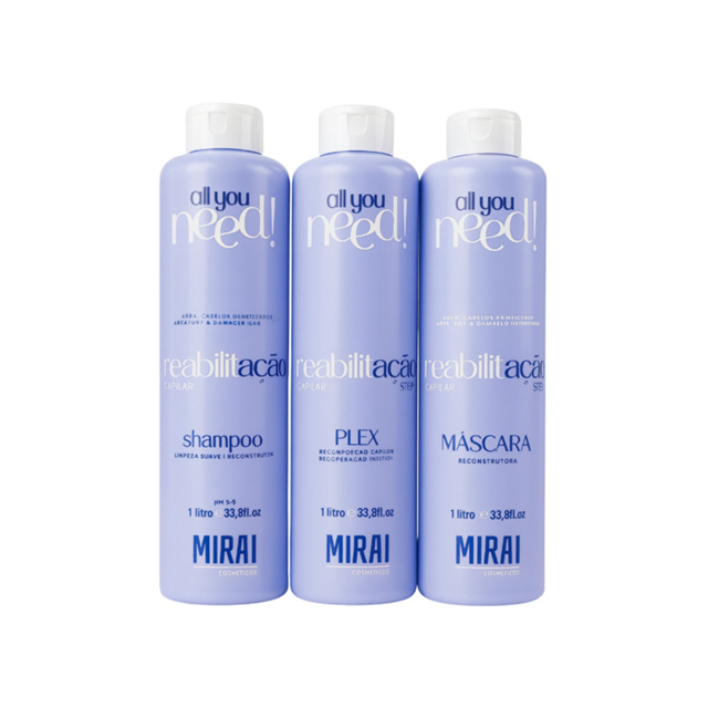 Kit Reabilitação Capilar 1L Tratamento Anti-emborrachamento Recuperação Dos Fios Pós Corte Químico Mirai Cosméticos