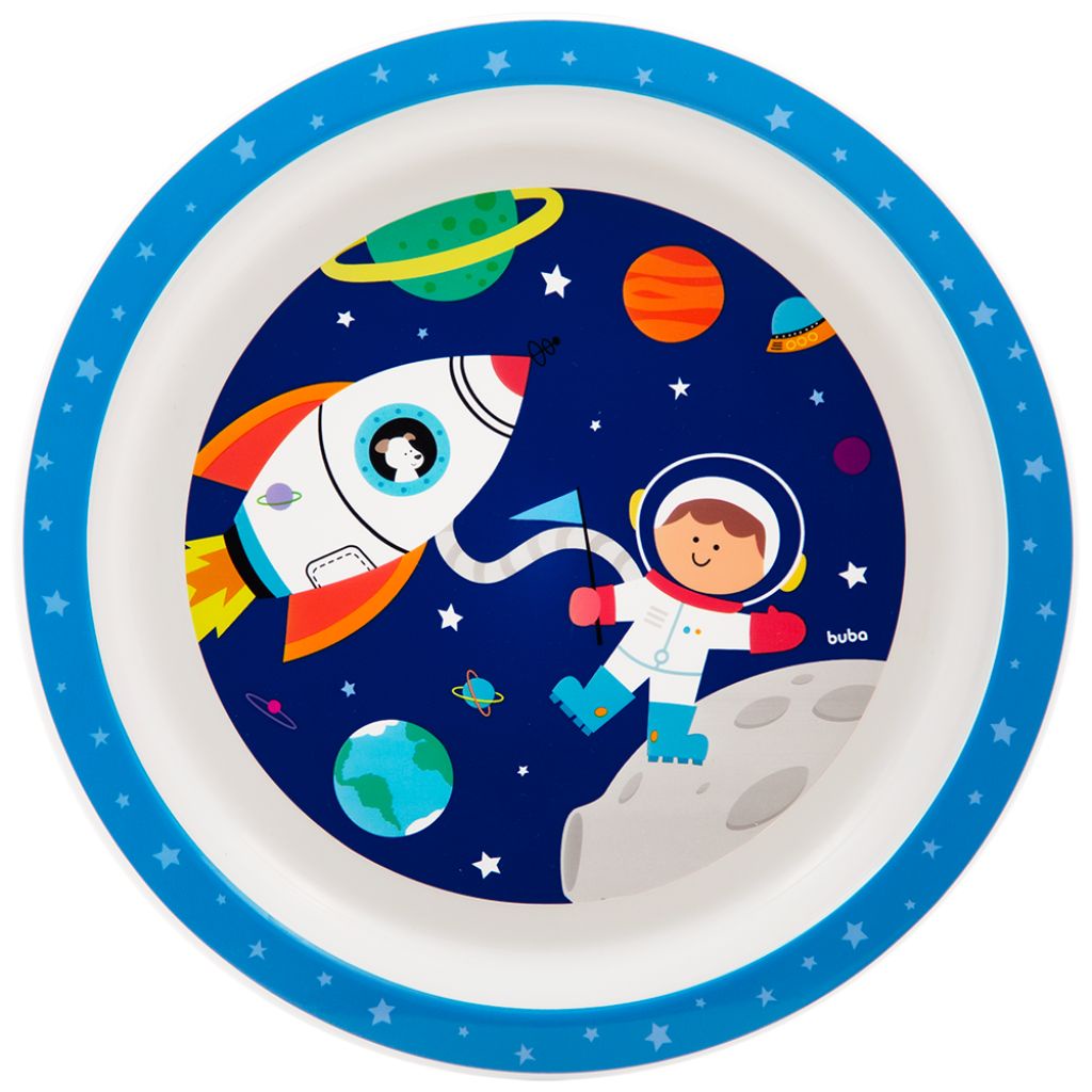 Kit Refeição Completo Aventuras Astronauta Prato Bowl Copo Talheres E Garrafinha Buba