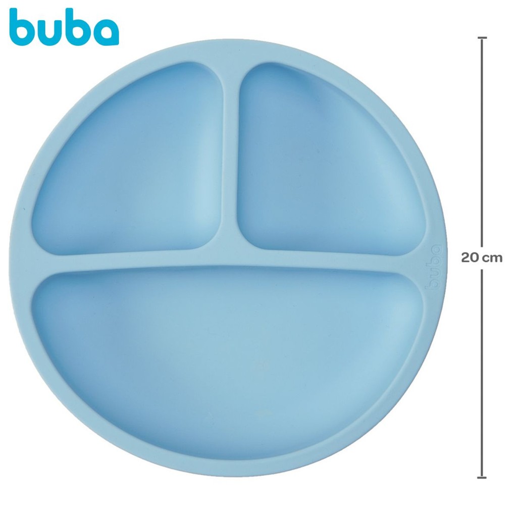 DESCRIÇÃO DO PRODUTO O Kit Alimentação em Silicone da Buba é super prático, higiênico e resistente, ideal para a introdução alimentar do pequeno. Acompanha um pratinho com divisórias que permitem servir diferentes tipos de alimentos, ajudando o bebê a reconhecer diversos sabores e texturas. Sua base com ventosas evita que o prato escorregue. O babador possui bolso pega-migalhas, ideal para proteger a roupinha do bebê, e seu fecho com botões se ajusta facilmente ao pescoço. A colher é flexível e perfeita para as gengivas delicadas do bebê. CARACTERÍSTICAS TÉCNICAS: Conteúdo da Embalagem: 1 Pratinho Com Divisórias Azu , 1 Babador Azul e 1 Colher Azul. Dimensões Aproximadas do Produto: 20 cm x 20 cm x 3 cm (Altura x Largura x Comprimento/Profundidade). Dimensões Aproximadas da Embalagem: 27 cm x 32 cm x 4 cm (Altura x Largura x Comprimento/Profundidade). Material/Composição: Silicone Idade Mínima Recomendada: A partir de 6 meses Marca: Buba Referência: 19568 Outras informações: As cores podem variar entre as imagens mostradas acima e o produto. Imagens meramente ilustrativas. Aviso: As informações e imagens divulgadas são de total responsabilidade do fabricante/fornecedor. Produto lacrado e disponível a pronta entrega para todo Brasil! APROVADO PELO INMETRO