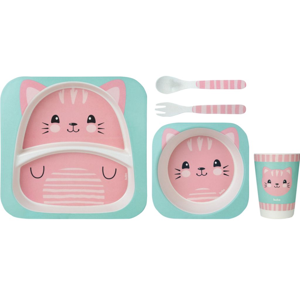 Kit Refeição Infantil Bambu Gatinho Rosa 13209 - Buba