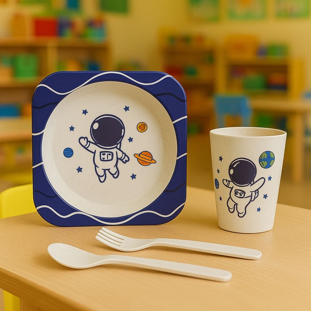 Torne as refeições das crianças muito mais divertidas e especiais com esses encantadores kits infantis de refeição! Cada conjunto vem completo com 1 prato fundo quadrado, 1 copo, 1 colher e 1 garfo, trazendo estampas exclusivas e coloridas que encantam os pequenos: Unicórnio mágico Astronauta no espaço Sereia encantada Dinossauro divertido Capivara fofinha Características: Itens inclusos: 1 prato fundo, 1 copo, 1 colher e 1 garfo Estampas alegres e temáticas que estimulam a imaginação Ideal para uso diário, escolas, piqueniques e até para presentear Benefícios: Incentiva a autonomia da criança na hora de comer Design ergonômico pensado para mãos pequenas Copo leve e prato com bordas altas para evitar derramamentos Fácil de limpar e reutilizável Torna as refeições mais divertidas e prazerosas