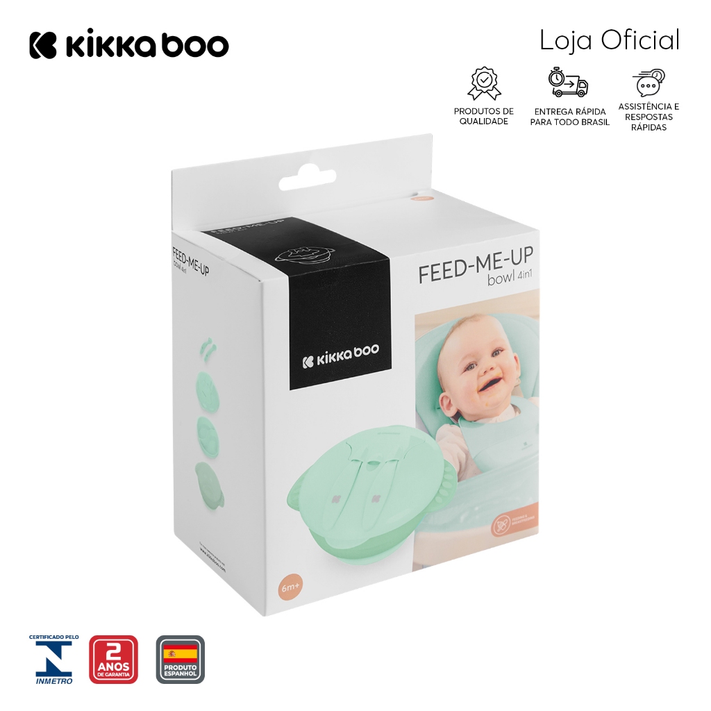 Kit Refeição Pote Bowl 4 em 1 Com Ventosa Divisória Talheres e Tampa Feed Me Up Mint Kikkaboo