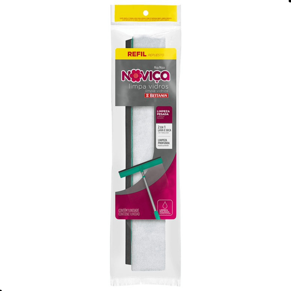 O Refil Mop Limpa Vidros Noviça Bettanin é ideal para o Mop Limpa Vidros com Cabo Noviça Bettanin. O mop Noviça lava e seca todos os tipos de vidros. Com cuidado e praticidade, protege as suas mãos do contato com produtos químicos. Kit com 3 unidades.