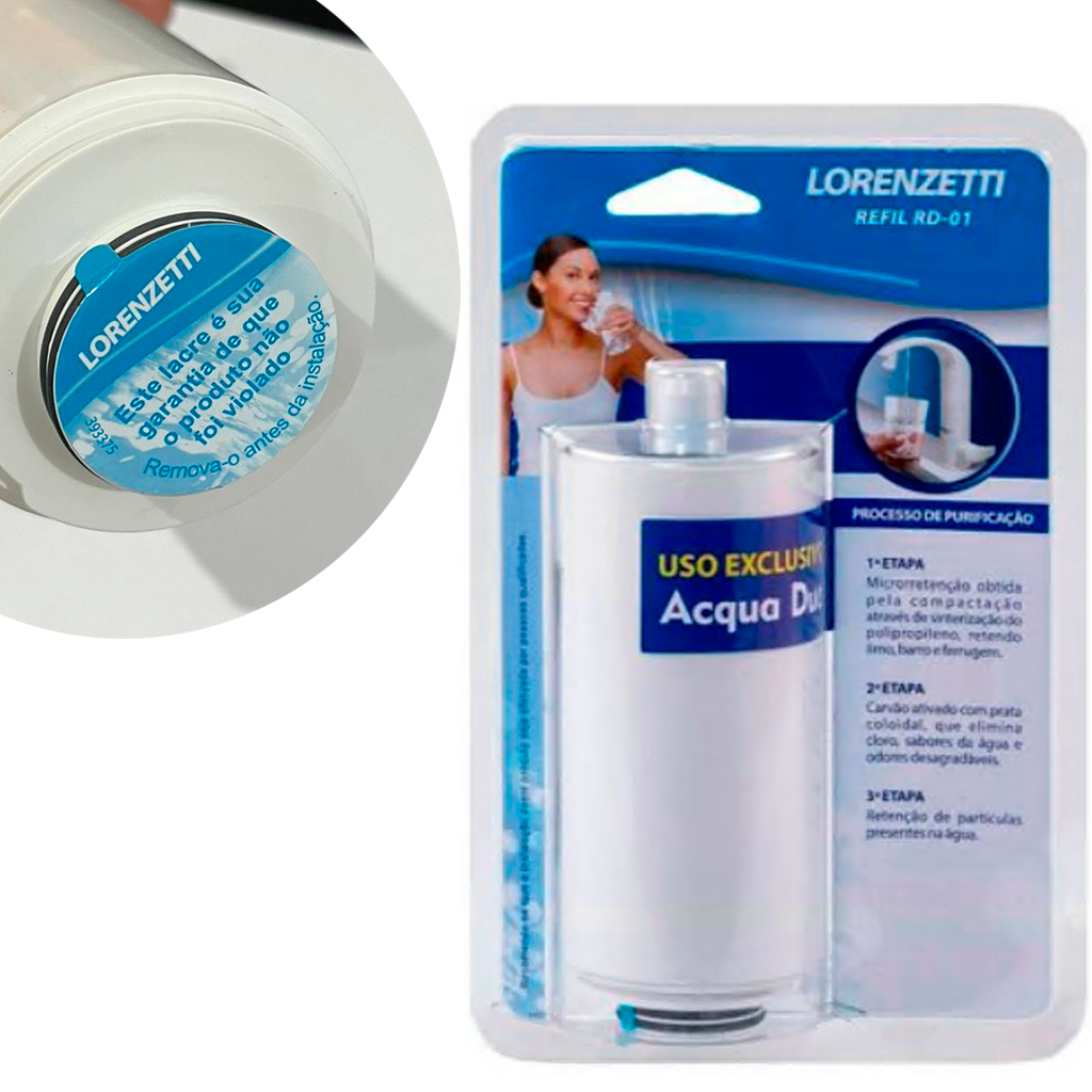 COMERCIAL VIPASA DISTRIBUIDORA Kit Refil Para Purificador Acqua Due + Purificador De Água Torneira Para Parede - Lorenzetti Refil exclusivo para filtro purificador da Torneira com Filtro modelo Acqua Due. Proporciona gua purificada com excelncia, seu processo de purificao passa por 3 etapas de filtragem. Garante a eliminao de resduos presentes na gua, elimina o excesso de cloro, gostos e odores desagradveis. Evita a proliferao de bactrias. - Uso exclusivo Acqua Due - Microrreteno, retem limo, barro e ferrugem. - Carvo ativado com prata coloiodal, elimina cloro, sabores e odores desagradveis. - Reteno de partculas presentes na gua Descrio Tcnica: Modelo: RD-01 Material: Carvo ativado impregnado com Ag., Termoplsticos e Elastmeros Classificao INMETRO: Reteno de Partculas Classe D Reduo de Cloro Livre: Aprovado Controle nvel microbiolgico: Sim Presso de Funcionamento: 20 a 400 kPa Temperatura de Operao: 03C a 40C Vazo Nominal: 48L/h Vida til do filtro: 06 meses ou 1500L Dimenses: 13cm x 5,5cm x 5,5cm DESCRIÇÃO TORNEIRA DE PAREDE - PURIFICADOR DE PAREDE ------------------------------------------------------------------------------------------------------------- A "Torneira com Purificador e Filtro de Água Lorenzetti Acqua Due de Parede" é um dispositivo que combina uma torneira convencional com a capacidade de filtrar a água para consumo. Aqui estão alguns elementos que geralmente podem estar associados a essa descrição: Tipo de Produto: A torneira é um dispositivo destinado à distribuição de água para uso doméstico, mas com a adição de um sistema de purificação. Funcionalidade de Purificação e Filtro: Possui um sistema integrado de purificação e filtro de água. Isso geralmente inclui componentes como carvão ativado e outros meios filtrantes para remover impurezas, sabores desagradáveis e odores. Instalação na Parede: Projetada para ser instalada na parede, o que pode ser conveniente, especialmente na cozinha. Marca: Fabricada pela Lorenzetti, uma marca reconhecida na fabricação de produtos para banheiros e cozinhas. Design Atraente: Pode apresentar um design esteticamente agradável, integrando-se ao ambiente da cozinha ou do local de instalação. Controle de Vazão e Temperatura: Pode oferecer controle de vazão e temperatura da água, semelhante a uma torneira convencional. Materiais Duráveis: Geralmente fabricada com materiais duráveis e resistentes à corrosão, como aço inoxidável ou plásticos de alta qualidade. Substituição de Filtros: Pode exigir a substituição periódica dos elementos filtrantes para manter a eficácia do sistema de purificação. Instruções de Instalação e Uso: Recomenda-se seguir as instruções fornecidas pelo fabricante para garantir uma instalação correta e o uso eficaz do sistema de purificação. Essas torneiras com purificadores e filtros são uma escolha popular para quem busca água de qualidade diretamente da torneira, eliminando a necessidade de comprar água engarrafada. Certifique-se de seguir as recomendações do fabricante quanto à manutenção e substituição dos elementos filtrantes para garantir a eficácia contínua do sistema de purificação. O Purificador Lorenzetti Acqua Due combina design moderno com alta tecnologia. COMERCIAL VIPASA DISTRIBUIDORA