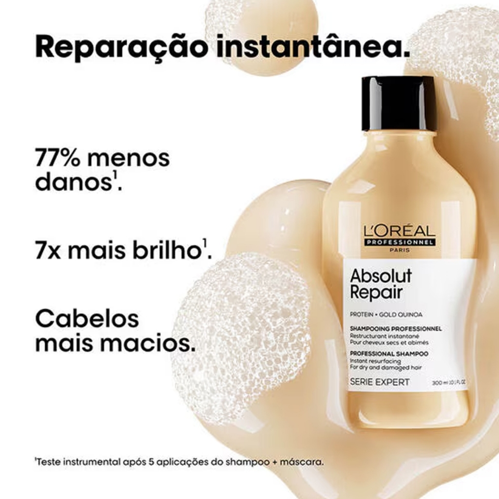 | KIT REFIL + SHAMPOO ABSOLUT REPAIR LORÉAL PROFESSIONNEL SERIE EXPERT este produto | R$ 219,90 | — | 5.0/5 | — |