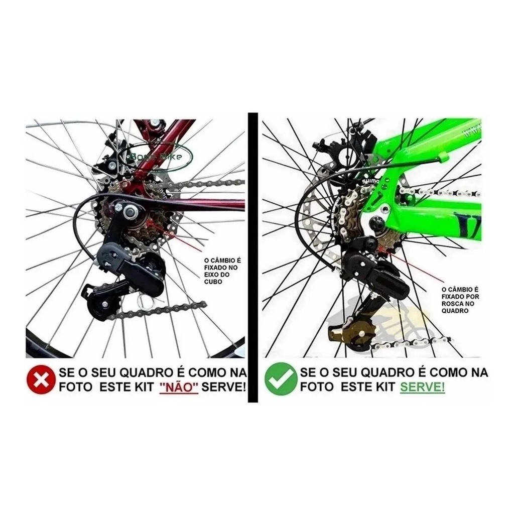 *** características do produto *** Kit de Câmbios de Transmissão para Bicicleta de 21 Marchas. Compatíveis com quadros de aço ou alumínio. Câmbio Traseiro 7v: "SEM" Gancheira Marca: Yamada Cor: Preto Câmbio Dianteiro 3v: Puxa por "CIMA"(Abraçadeira 31,8mm) Marca: Yamada Cor: Preto Corrente: 7v Marca: ybn Cor: Marrom Pedivela: 21v Marca: Ltx Cor: Preto Catraca: 7v Marca: Wg Sports Cor: Marrom/Preto Produto Original! Algumas dúvidas você encontra abaixo: É compatível e atende minha necessidade? - Neste caso é necessário que nos envie uma pergunta, tiramos sua duvida sobre compatibilidade por lá. Os produtos são originais? - Sim, todos os produtos em nossa loja são 100% originais. Tem garantia? - Sim contra defeitos de fabricação, nós daremos total suporte para lhe atender e resolver seu caso, assim que recebe seu produto, é possível mandar mensagem para nós caso precise de ajuda.