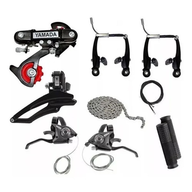 Kit Relação 21 Marchas Bicicleta Rapid Fire + Freio Vbrake RapFire Corrente Manopla Bicicleta 29