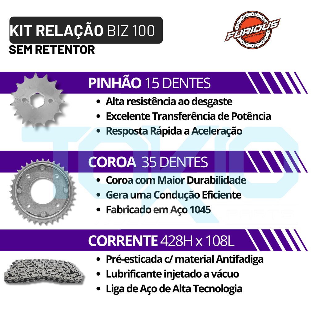 KIT RELAÇÃO BIZ 100 1998 A 2005 HONDA TRANSMISSAO BIS