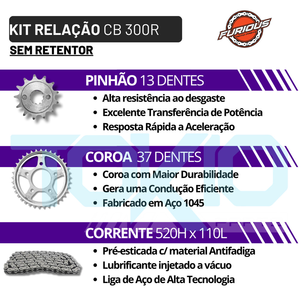 KIT RELAÇÃO CB 300 2009 A 2015 TRANSMISSÃO HONDA 300R