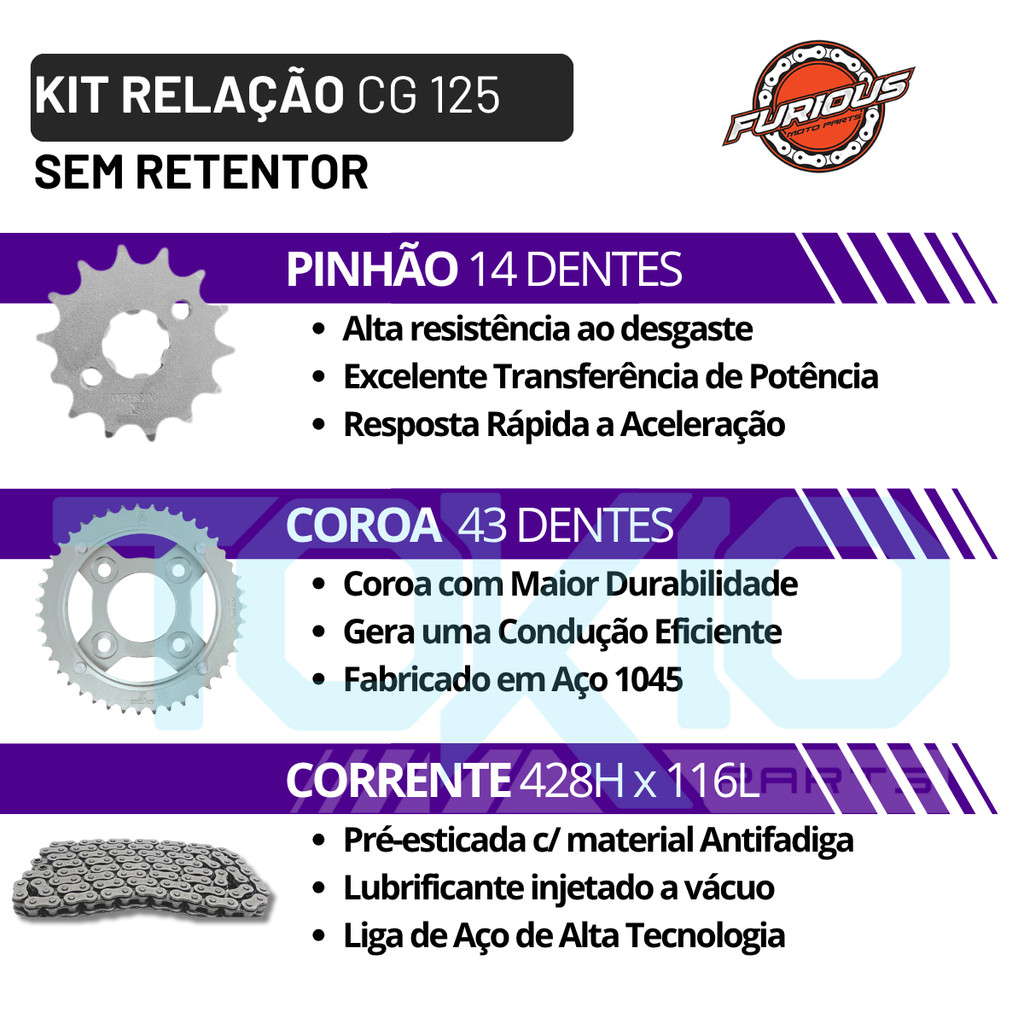 Kit Relação CG 125 Fan Titan 2009 A 2015 Transmissão Honda FURIOUS