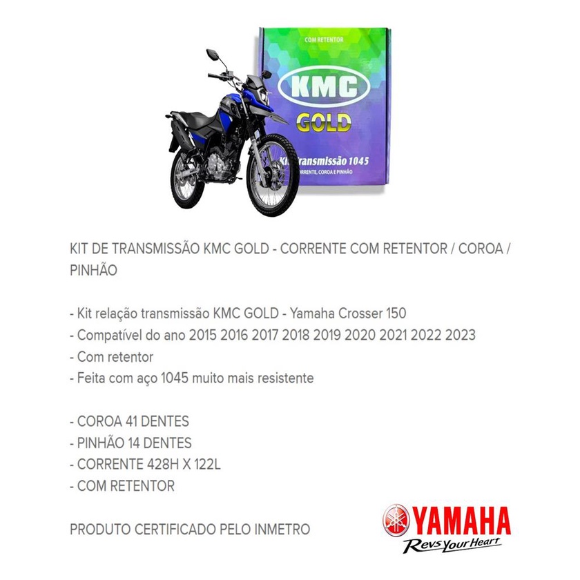 Kit Relacao Crosser 150 2015 2016 2017 2018 2019 2020 2021 2022 2023 Com Retentor Kmc Gold vale a pena?