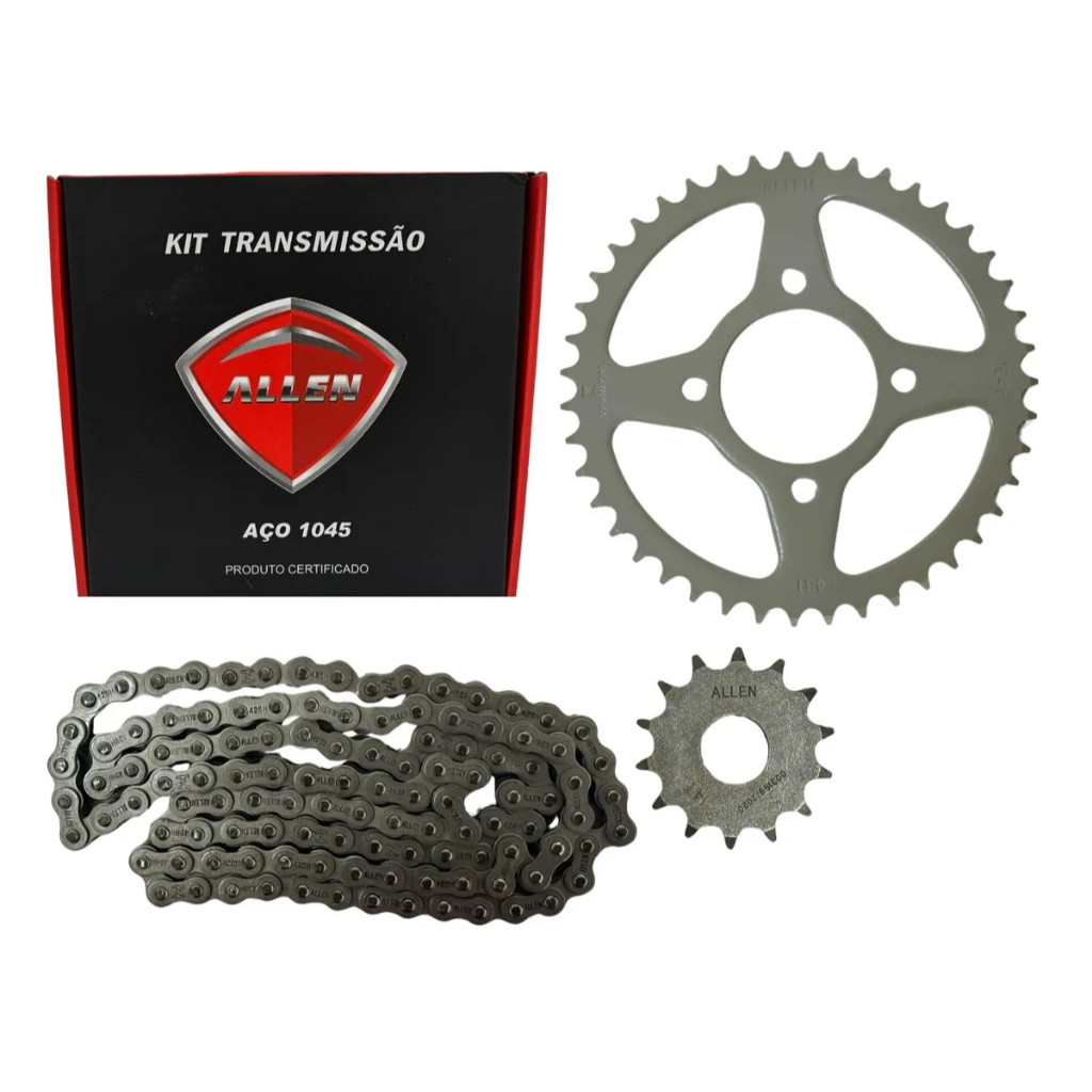 Kit Relação Transmissão Suzuki Yes Intruder 125 2001 até 2016 Original Allen Código: 80397 Aplicações: Suzuki Yes 125 – anos: 2001 2002 2003 2004 2005 2006 2007 2008 2009 2010 2011 2012 2013 2014 2015 2016 Suzuki Intruder 125 – anos: 2001 2002 2003 2004 2005 2006 2007 2008 2009 2010 2011 2012 2013 2014 2015 2016 Especificações Técnicas: Dentes da Coroa: 43 Dentes do Pinhão: 14 Corrente: 428Hx116L Sugerimos que todos os produtos sejam instalados por mecânicos capacitados. Garantia do vendedor: 3 meses