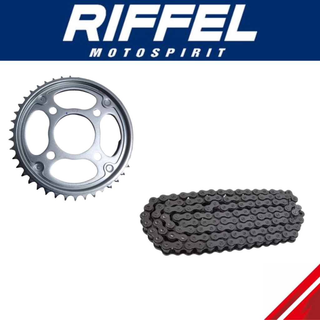 Descrição do produto KIT RELACAO RIFFEL - 71827 KIT RELACAO COMPLETO (COROA/PINHAO/CORRENTE) - ACO 1045 - ORIGINAL RIFFEL PRINCIPAIS APLICACOES: MOTOS: TITAN/ FAN 150 TODOS MODELOS ANO: 2004 a / 2015 COMPONENTES: 1 PINHAO 16 DENTES 1 COROA 43 DENTES 1 CORRENTE 428H118L - KIT TITANIUM: Produzido em aco 1045, Ele e composto por uma coroa, um pinhao e uma corrente Riffel sem retentor. - COROA: A coroa e produzida em aco 1045, que e mais resistente e duravel. - PINHAO: A sua moto merece so o melhor, por isso as pecas do kit titanium sao zincadas, evitando os efeitos da oxidacao. O pinhao possui tempera, oferecendo alta resistencia e durabilidade. -CORRENTE: Com menos ruido e desgaste, a corrente Riffel foi idealizada para ajudar sua moto a atingir o maximo de sua capacidade, alem de garantir a sua seguranca por meio de toda sua qualidade, gracas ao seu modelo mais reforcado.