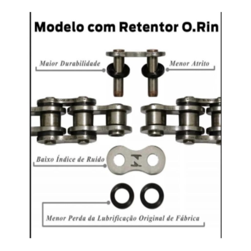 Kit Relacao Tração Transmissão Honda Nxr Bros 150 2004 2005 2006 2007 2008 2009 2010 2011 2012 2013 2014 2015 Com Retentor Original Kmc