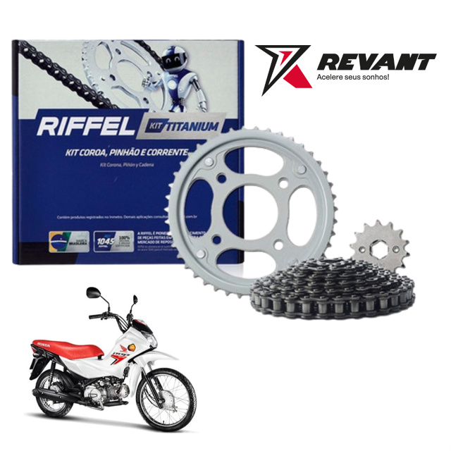 Kit Relação Tração Transmissão Honda Pop 110i 2016 2017 2018 2019 2020 2021 2022 2023 a 2025 Original Riffel Aço 1045