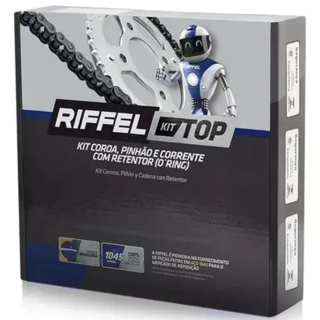 KIT RELAÇÃO TRAÇÃO TRANSMISSÃO COM ANEL RETENTOR (O'RING) KIT ORIGINAL RIFFEL APLICAÇÃO: YF 150 FAZER UBS-ED-SED - 2014 2015 2015 2016 2017 2018 2019 2020 2021 2022 2023 2024 YBR 150 FACTOR E - ED / UBS / E - 2025 2026