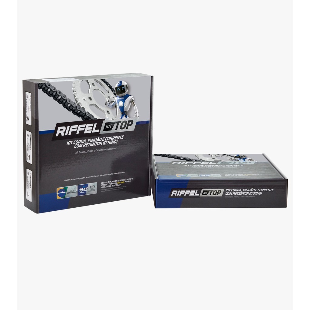 ** A MOTO DEVE ESTAR ORIGINAL PARA QUE TENHA COMPATIBILIDADE COM O KIT KIT RELAÇÃO TRANSMISSÃO CG 160 COM RETENTOR - RIFFEL TOP – AÇO 1045 Compatibilidade: -Honda CG 160 (2016-2025) - FAN ESDi Composição do Kit: - Coroa: 44 dentes - Pinhão: 15 dentes - Corrente: 428HO x 118L reforçada (Com Retentor O'Ring) Vantagens: - Aço 1045 de alta resistência - Mais eficiência na lubrificação - Menos paradas para regulagem - Até 40% mais rendimento comparado ao kit Titanium Embalagem original Riffel Perfeito para uso diário, trabalho ou longas viagens!
