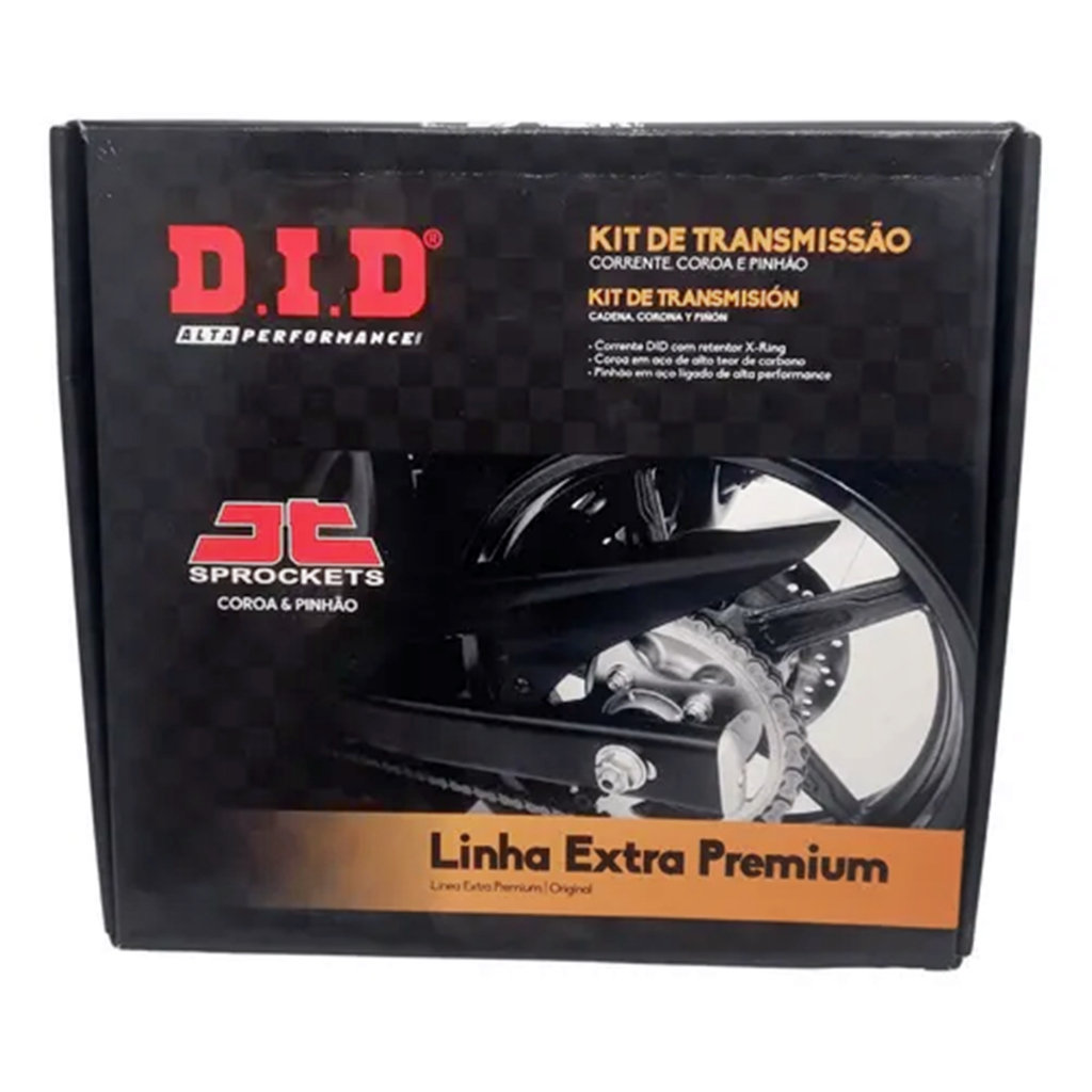 KIT RELAÇÃO TRANSMISSÃO Marca: D.I.D Alta performance LINHA EXTRA PREMIUM Aplicação: Compatível com KAWASAKI EN 650 VULCAN -S Descrição: Corrente 520VO - 120ZB marca DID COM RETENTOR Coroa: 46 dentes - marca JT SPROCKETS Pinhão: 15 dentes - marca JT SPROCKETS Todas as coroas possuem têmpera nos dentes, melhor resistência ao desgaste acabamento anticorrosivo nas coroas e pinhões dentes em perfil “u”, mais silencioso e durável coroas e pinhões produzidos em aço ligado de maior resistência. Este kit relação já é certificado pelo INMETRO. SKU: 072112