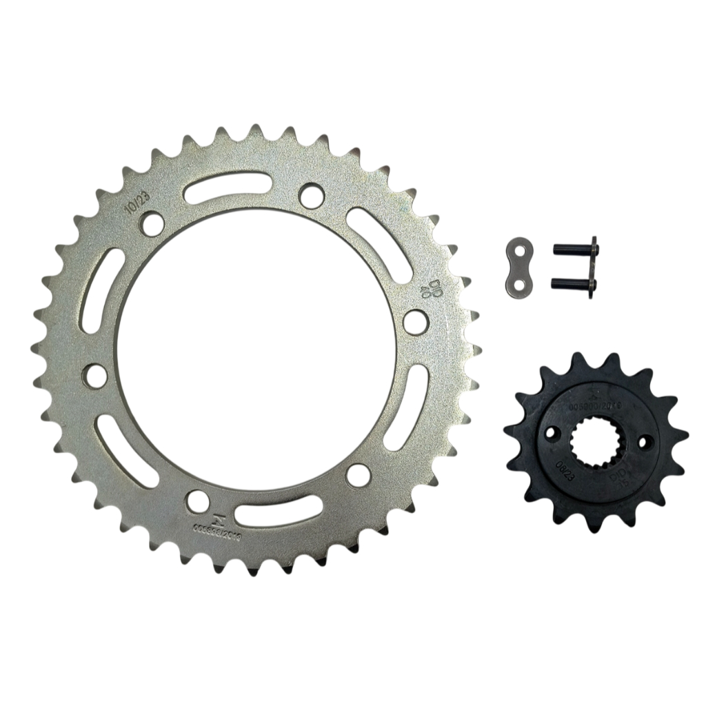 Kit relação Transmissão DID Honda Falcon com retentor Especificações: Corrente DID com retentor 520V-106ZB emenda de arrebitar Coroa 40T Pinhão 15T Código do Fabricante: 049953 EAN: 7894932001395 Aplicação: Honda Falcon carburada 2000 a 2008 Honda Falcon Injetada 2013 a 2015 Kit completo com coroa, corrente com retentor e pinhão tudo da marca DID Aço 1045 Todas as coroas possuem têmpera nos dentes, melhor resistência ao desgaste acabamento anticorrosivo nas coroas e pinhões dentes em perfil U, mais silencioso e durável coroas e pinhões produzidos em aço ligado de maior resistência.