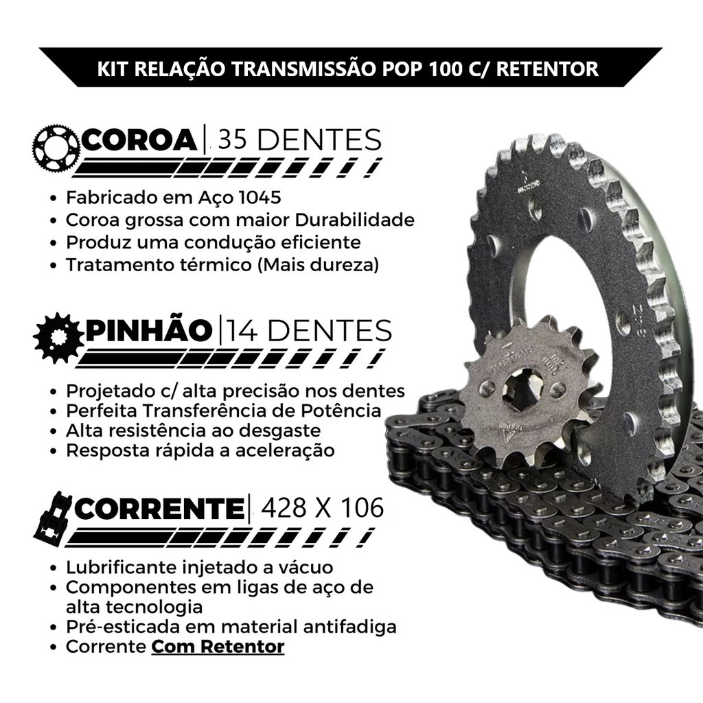 Kit Relação Transmissão Honda Pop 100 2007/2015 C/ Retentor