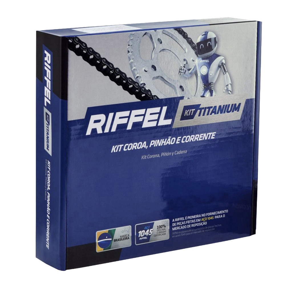 Kit Relação Transmissão Riffel Intruder 125 Yes 125 2005 A 2011 Aço 1045 Reforçado Titanium