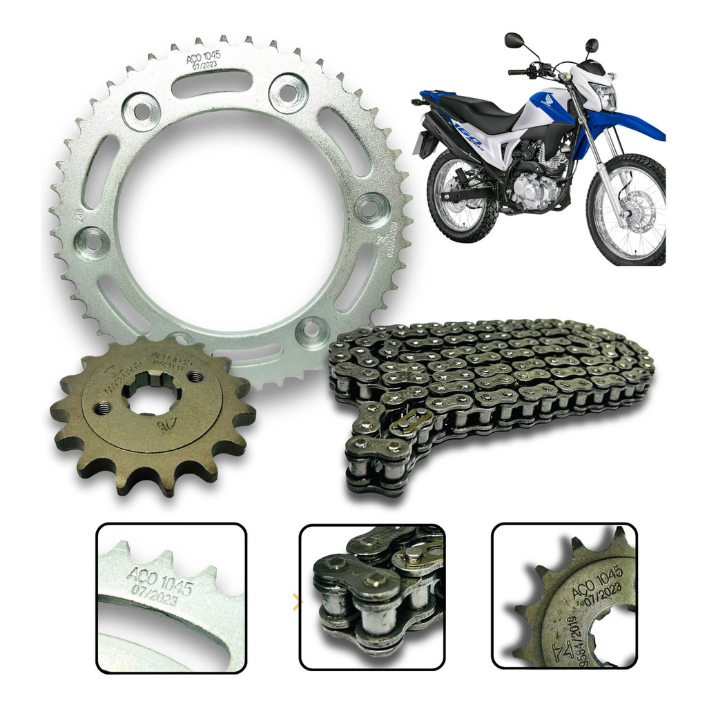 Kit Relação Transmissão Tração Nxr Bros 160 Xre 190 2016/2023 Aco 1045