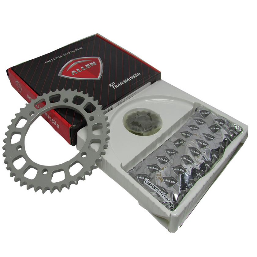 O kit da Allen e fabricado com pecas de primeira linha, e sao usinadas com um perfeito acabamento. O principal material e o aco 1045, que tem tratamento isolante conferindo muito mais resistencia e durabilidade a longo prazo. ***Alem disso, nos da Moto Mfe entregamos: - O melhor preco da plataforma! - Entrega agilizada! - Produtos conferidos na hora do envio por uma equipe especializada! -------------------------------------------------------------------------------------------------------------------- ******KIT RELACAO ALLEN FAZER 250 2014 A 2017****** ACOMPANHA: - CORRENTE 428HX 132L SEM RETENTOR - COROA 45 DENTES E PINHAO 15 DENTES EM ACO 1045! APLICACAO: - Fazer 250 2014 a 2017 CODIGO: 75226 --------------------------------------------------------------------------------------------------------------------