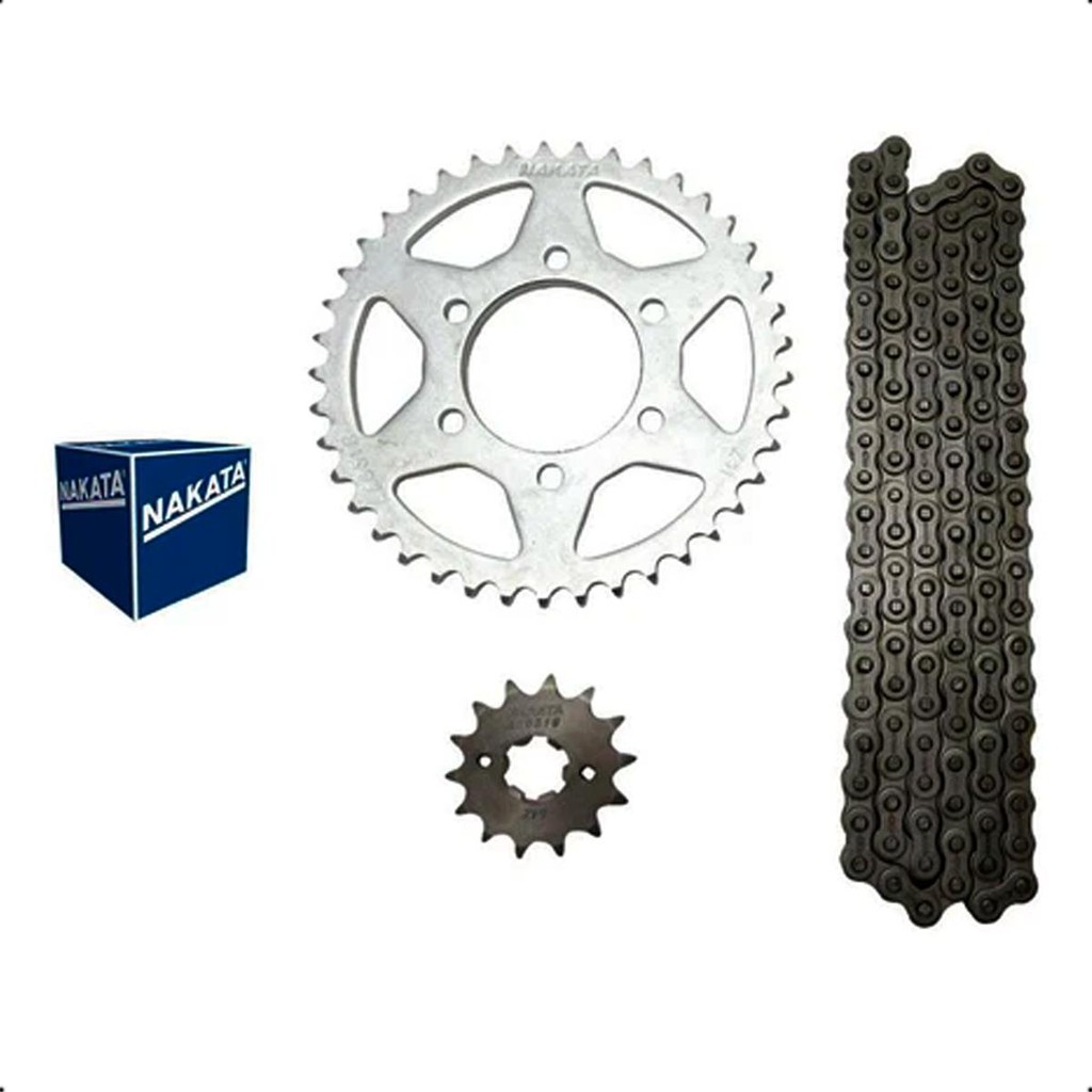 Kit relação (Transmissão). Desenvolvidos com a mais alta qualidade e tratamento térmico especial para aumentar a resistência e durabilidade nas áreas de maior uso e impacto. Especificações Técnicas: - Aço 1045; - Peso 2,100kg; - Corrente 428HX122 sem O'ring; - 41 dentes da coroa; - 14 dentes do pinhão. Conteúdo da Embalagem: - O kit contém corrente, coroa e pinhão.