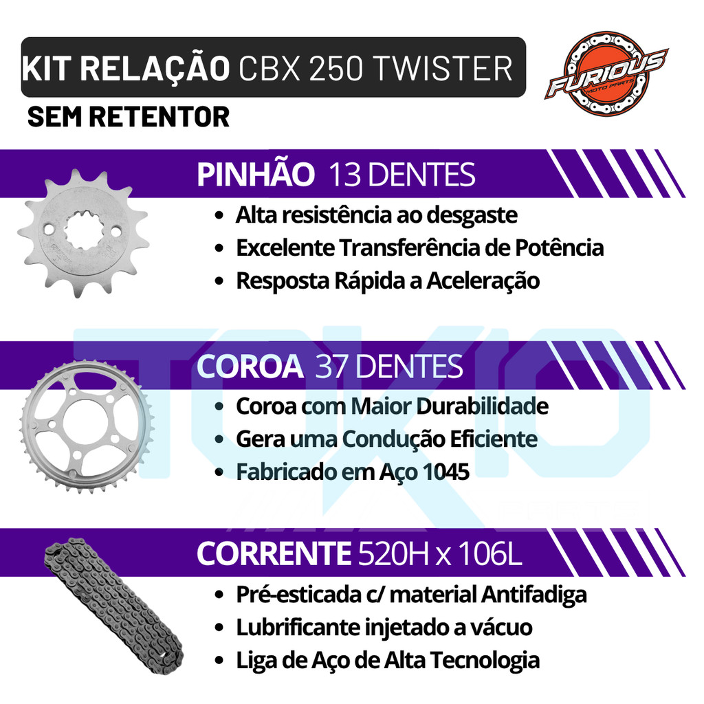KIT RELAÇÃO TWISTER CBX 250 2001 A 2008 TRANSMISSÃO HONDA