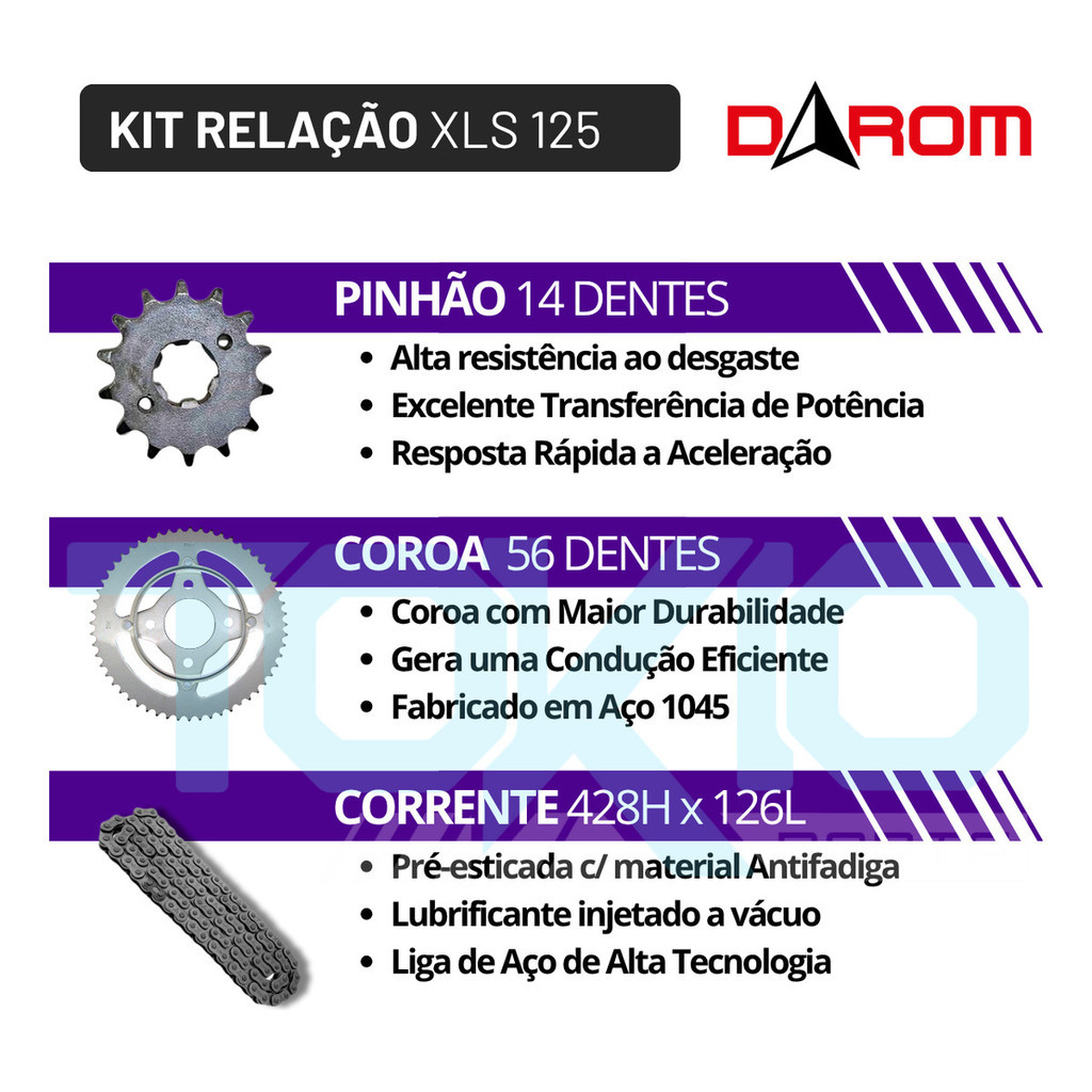 | Kit Relação Xls 125 1986 A 1993 Aço 1045 Honda Transmissão este produto | R$ 113,90 | 24% | 4.8/5 | — |