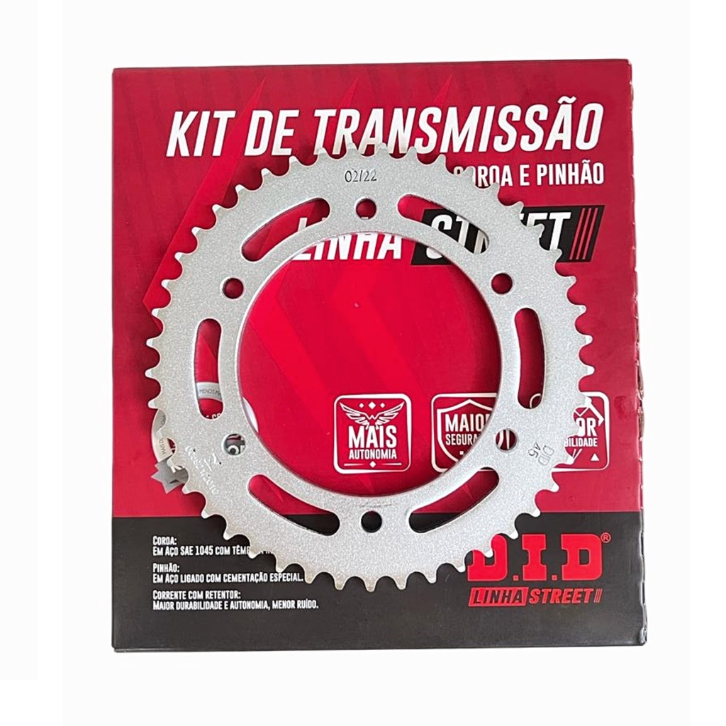 ENVIAREMOS: -1 COROA 45 DENTES -1 PINHÃO 15 DENTES -1 CORRENTE COM RETENTOR 428HXV-132L --------------------------------------------- Aplicação: -FAZER 250 2005 À 2017 ------------------------------------------- INFORMAÇÕES: -COR: PRETO E PRATA -MARCA: DID -COD FABRICANTE: 64339 -CORRENTE COM RETENTOR -EMENDA DE CLIPE -COROA EM AÇO 1045 COM TÊMPERA NOS DENTES -PINHÃO EM AÇO LIGADO COM SEMENTAÇÃO ESPECIAL ------------------------------------ !!! DESPACHAREMOS SEU PRODUTO DENTRO DE 24 HORAS !!! Atenção -O prazo de entrega do produto é ESTIPULADO PELOS TRANSPORTADORA -As compras que precisam de confirmação de pagamento (por meio de boletos) só serão postadas após a devida confirmação.