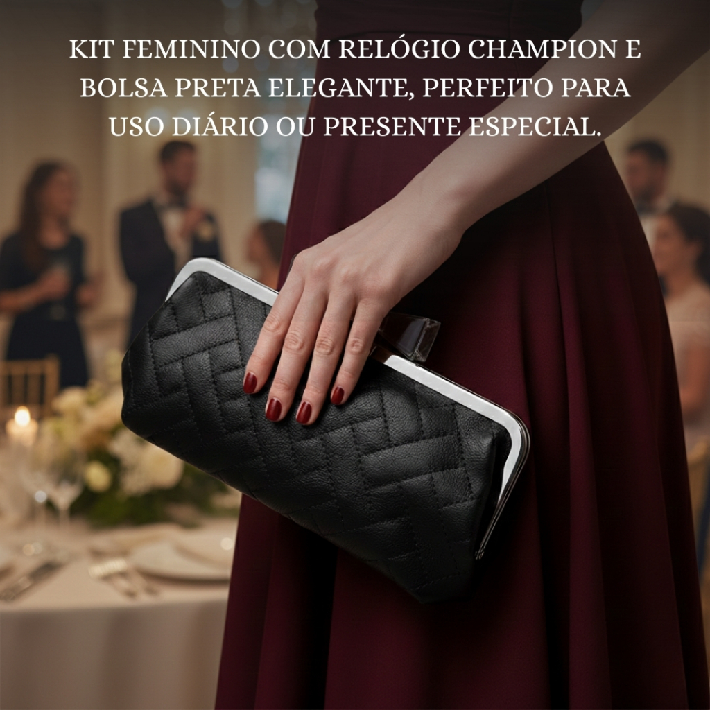 Kit Relógio De Pulso Com Bolsa Elegante Champion Original