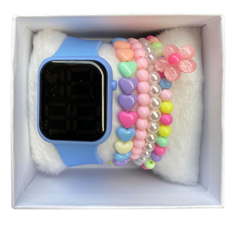 Kit Relógio digital adolescente para meninas com pulseira de missanga e caixa