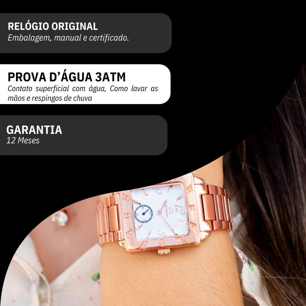 Quer conhecer as melhores marcas de relógios com os melhores preços? Seja bem-vindo à RBM WEBSHOP - Aqui você encontra relógios originais, que acompanham a caixa, nota fiscal e a garantia de um ano do fabricante. Abaixo colocamos algumas informações como o tamanho, a cor, as especificações sobre resistência à água, o material do relógio e todo o necessário. Após a confirmação do pagamento, nós prepararemos o seu pacote em uma embalagem segura e lacrada, e você receberá o código de rastreamento. Ah, e depois você pode avaliar tanto nossa loja como o produto, pois a sua opinião é muito importante para melhorar cada vez mais nossos serviços! Seja bem-vindo sempre e sinta-se seguro. Esse é nosso compromisso! RBM WEBSHOP RELÓGIOS DO BRASIL Loja Autorizada VAMOS CONHECER MELHOR O RELÓGIO? Informações Básicas: Marca: Ana Hickmann Referência: AH28517Z Gênero: Feminino Características: Composição do Vidro: Cristal Mineral Material da Caixa: Aço Inox Cor da Caixa: Prata Material da Pulseira: Aço Inox Cor da Pulseira: Prata Cor do Fundo: Branco Modelo : Analógico Mecanismo: Quartz Alimentação: Bateria Resistência à Água: 3 ATM Diâmetro da Caixa: 3,1 cm x 3,1 cm Espessura da Caixa: 1,2 cm Largura da Pulseira: 1,8 cm Comprimento da Pulseira: 21 cm Peso: 106 gramas Tipo de Fecho: Pressão com dois botões ***Kit Colar e Brincos iguais as fotos.*** Relógio de altíssima qualidade, com 1 ano de garantia. Conteúdo da Embalagem O relógio vai na caixa original, com a nota fiscal, certificado de garantia e manual de instrução. Acompanha um kit colar e brincos de presente.