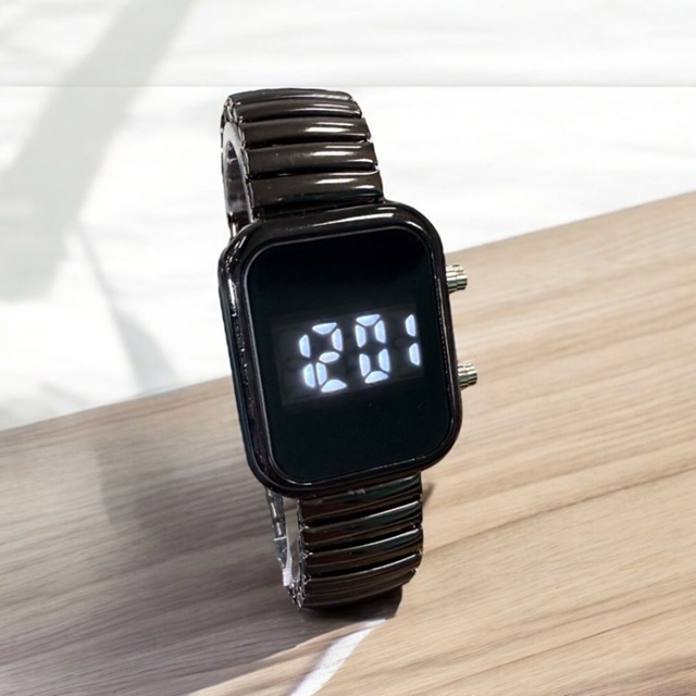 KIT RELOGIO FEMININO DE DIGITAL DE AÇO INOXIDAVEL PULSEIRA ELASTICA