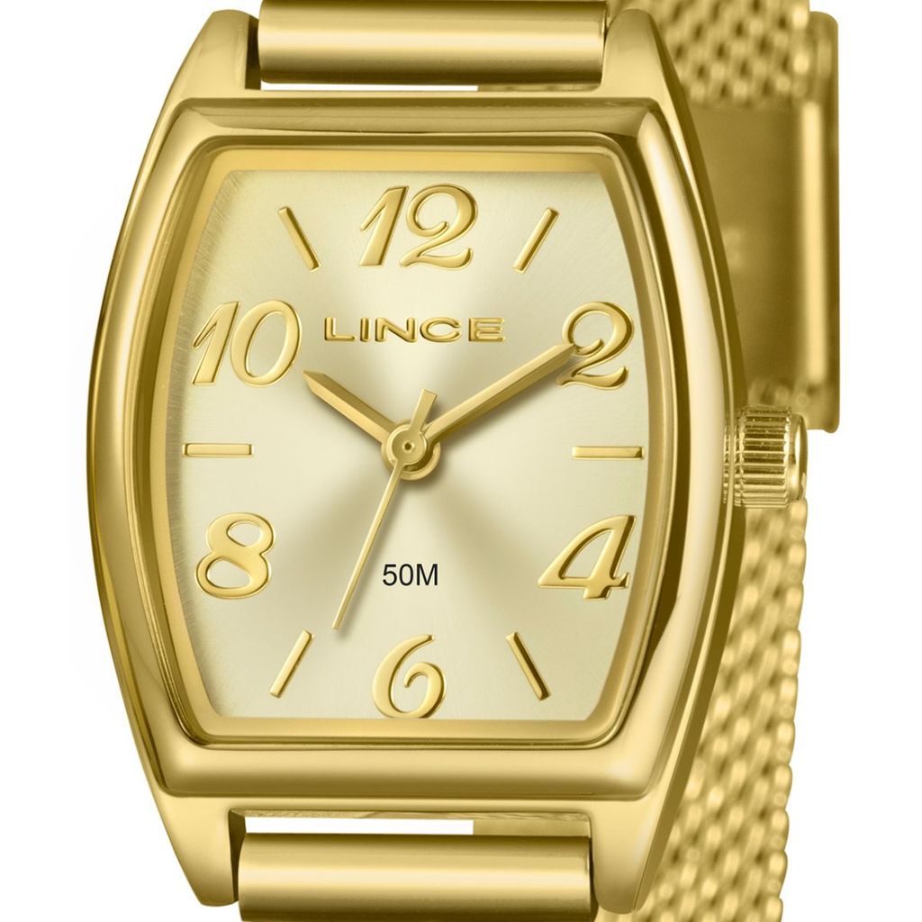 Especificações Técnicas: Marca: LinceReferência: LQGH278L22 C2KXGênero: FemininoCor da Pulseira: DouradaCor da Caixa: DouradaMaterial da Pulseira: Aço Inoxidável tipo meshMaterial da Caixa: Aço Inoxidável Tamanho da Caixa: 22 mm Resistência à água: 5 ATM (50 metros) Tipo de movimento: Analógico (Quartz)Características do vidro: Cristal Mineral
