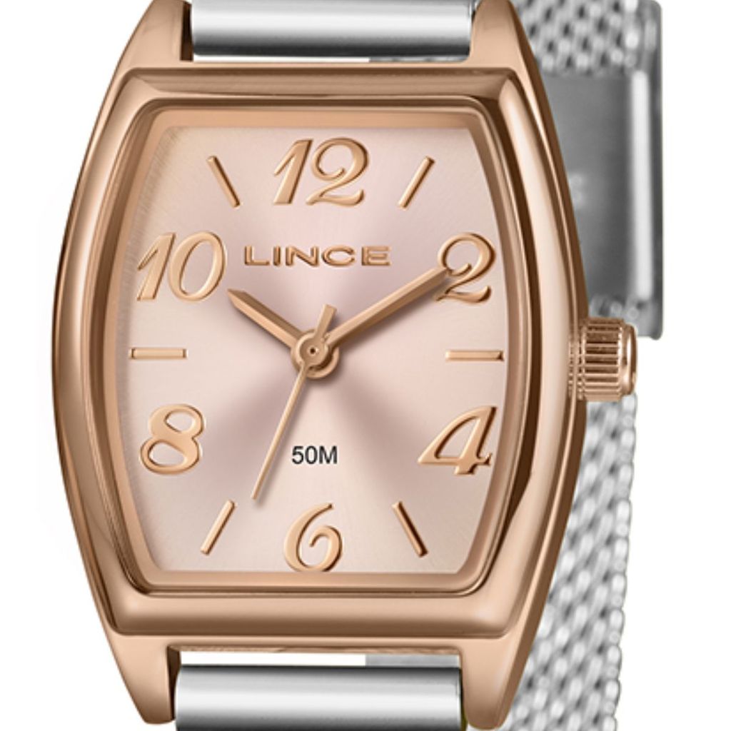 Especificações Técnicas: Marca: Lince Referência: LQTH278L22 R2SX Gênero: Feminino Cor da Pulseira: Prata Cor da Caixa: Rosê Material da Pulseira: Aço Inoxidável tipo mesh Material da Caixa: Aço Inoxidável Tamanho da Caixa: 22mm Resistência à água: 5 ATM (50 metros) Tipo de movimento: Analógico (Quartz) Características do vidro: Cristal Mineral