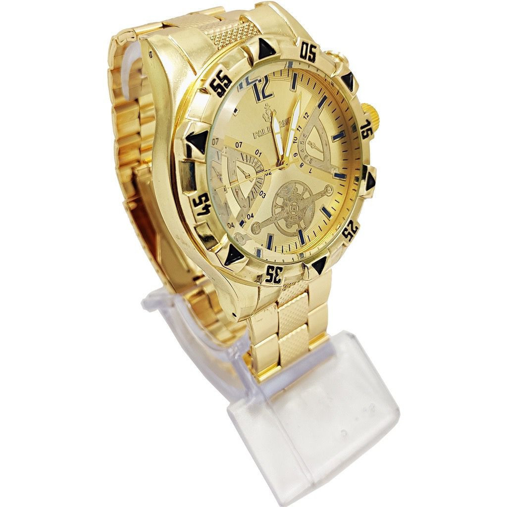 Kit Relógio Masculino Banhado a Ouro 18k Dourado Original Luxo + Corrente em Aço Banhada Masculina + Pulseira e Pingente