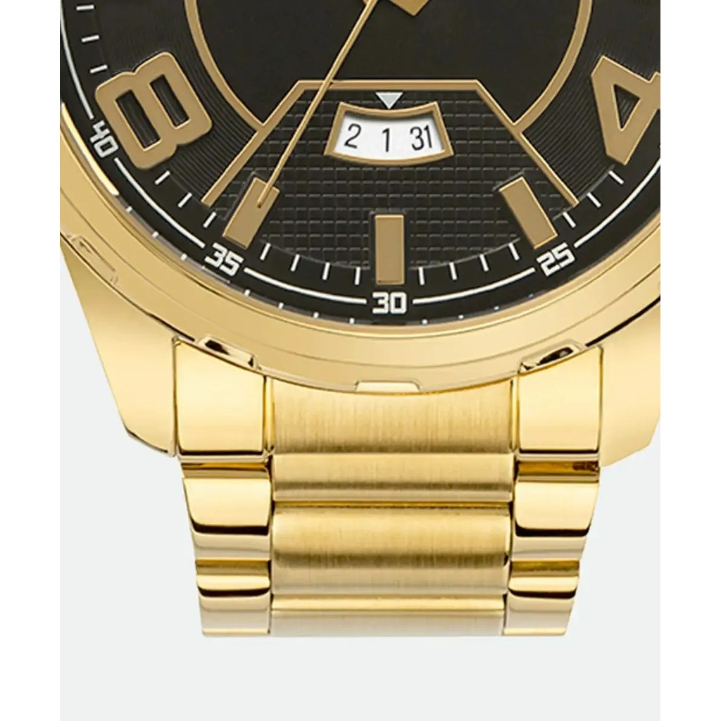 PRODUTO ORIGINAL GARANTIDO!!! Somos revendedores autorizados da marca Condor. Temos Disponível, ENVIO IMEDIATO! Relógio Condor CO2117AR/4P Informações Básicas - Marca: Condor - Referência: CO2117AR/4P - Gênero: Masculino - Garantia: 1 Ano diretamente com o fabricante Funções: - Analógico - Calendario Características - Composição do Vidro: Cristal mineral - Material da Caixa: Metal - Cor da Caixa: Dourado - Material da pulseira: Aço - Cor da Pulseira: Dourado - Mostrador: Preto - Peso: 140,9 g - Bateria Descrição: O relógio masculino dourado Condor é um modelo de caixa robusta e com detalhes no aro que enriquecem a peça. Com mostrador preto cheio de detalhes marcantes, ele foi desenvolvido para homens que querem marcar sua presença. Possui maquinismo analógico, pulseira de aço e resistência à água de 5 ATM. Medidas - Diâmetro da Caixa: 5,0 cm - Altura: 1,0 cm Resistência à Água 5 ATM - WR: 50 Mts - Pode Lavar as Mãos: SIM - Pode Usar em Água Corrente: SIM - Pode Usar na Piscina: SIM - Pode Usar em Mergulho Profundo: NÃO Acompanha: - Manual de instruções - Embalagem - Certificado de Garantia - Nota Fiscal Ainda esta com dúvida? Entre em contato conosco através do canal de perguntas, atendimento diário, respostas rápidas e estaremos sempre a disposição para lhe atender.