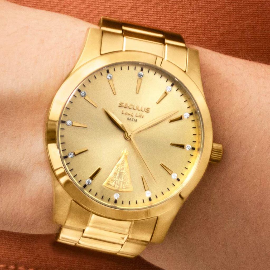 Compre o Kit Relógio Seculus Feminino com Colar Nossa Senhora Aparecida 20981LPSKDA1K1 na Eclock, a maior loja de relógios do Brasil! Vamos conhecer um pouco mais sobre o produto? Possui mecanismo Analógico, a pulseira é na cor Dourado, fabricada em Aço, com 23 cm de comprimento e possui Fecho Dobrável com Dois Botões. A Caixa (peça onde fica o mostrador) é fabricada em Metal, possui fundo do tipo Rosqueada, mede 3,8 cm de diâmetro, sem considerar a coroa, e 1,0 cm de espessura, o que é considerado tamanho Médio para relógios do gênero Feminino. O Kit Relógio Seculus Feminino com Colar Nossa Senhora Aparecida 20981LPSKDA1K1 tem nível de resistência à água especificado em 5 ATM. É Fabricado por Seculus da Amazônia Indústria e Comércio SA. CNPJ: 34.516.088/0001-10 e tem Garantia de 2 Anos com o Fornecedor.