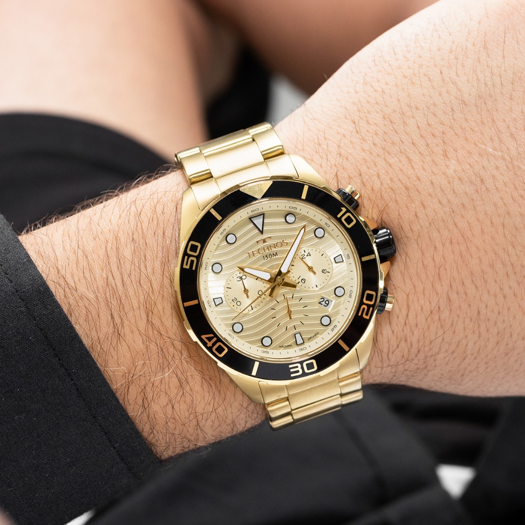 Compre o Kit Relógio Technos Masculino Acqua Torben Grael JS25BBV/1D na Eclock, a maior loja de relógios do Brasil! Vamos conhecer um pouco mais sobre o produto? Possui mecanismo Analógico, a pulseira é na cor Dourado, fabricada em Aço, com 25 cm de comprimento e possui Fecho Dobrável com Botão e Trava. A Caixa (peça onde fica o mostrador) é fabricada em Aço com aro Rotativo, possui fundo do tipo Rosqueada, mede 4,3 cm de diâmetro, sem considerar a coroa, e 1,2 cm de espessura, o que é considerado tamanho Médio para relógios do gênero Masculino. O Kit Relógio Technos Masculino Acqua Torben Grael JS25BBV/1D tem nível de resistência à água especificado em 15 ATM. Com relação as funções adicionais do relógio: possui Calendário Analógico com Data, Cronógrafo Analógico, Não Possui Alarme, Não Possui Timer, Não possui função de Aviso de Hora Cheia (Função Chime), Marcadores com Illuminator. É Fabricado por Technos da Amazonia Indústria e Comércio. CNPJ: 04628426/0001-45 e tem Garantia de 1 Ano com o Fornecedor.