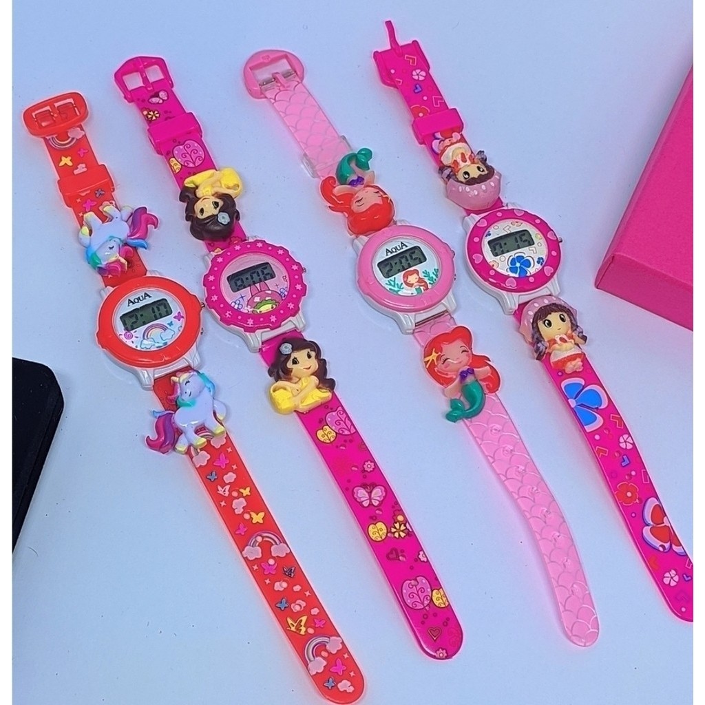 Kit Relógios Infantil Digital + Pulseira Plástico 3D Meninas Desenho animados Disney Sereia Unicórnio Acessórios Moda