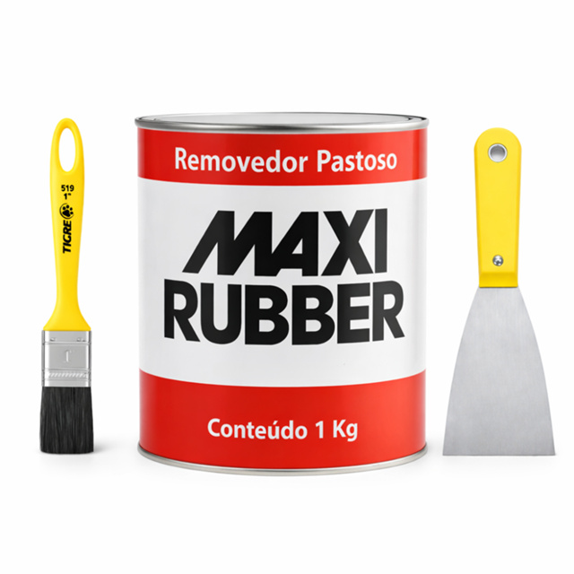 Kit Removedor Pastoso Maxi Rubber 1kg + Pincel e Espátula Profissional