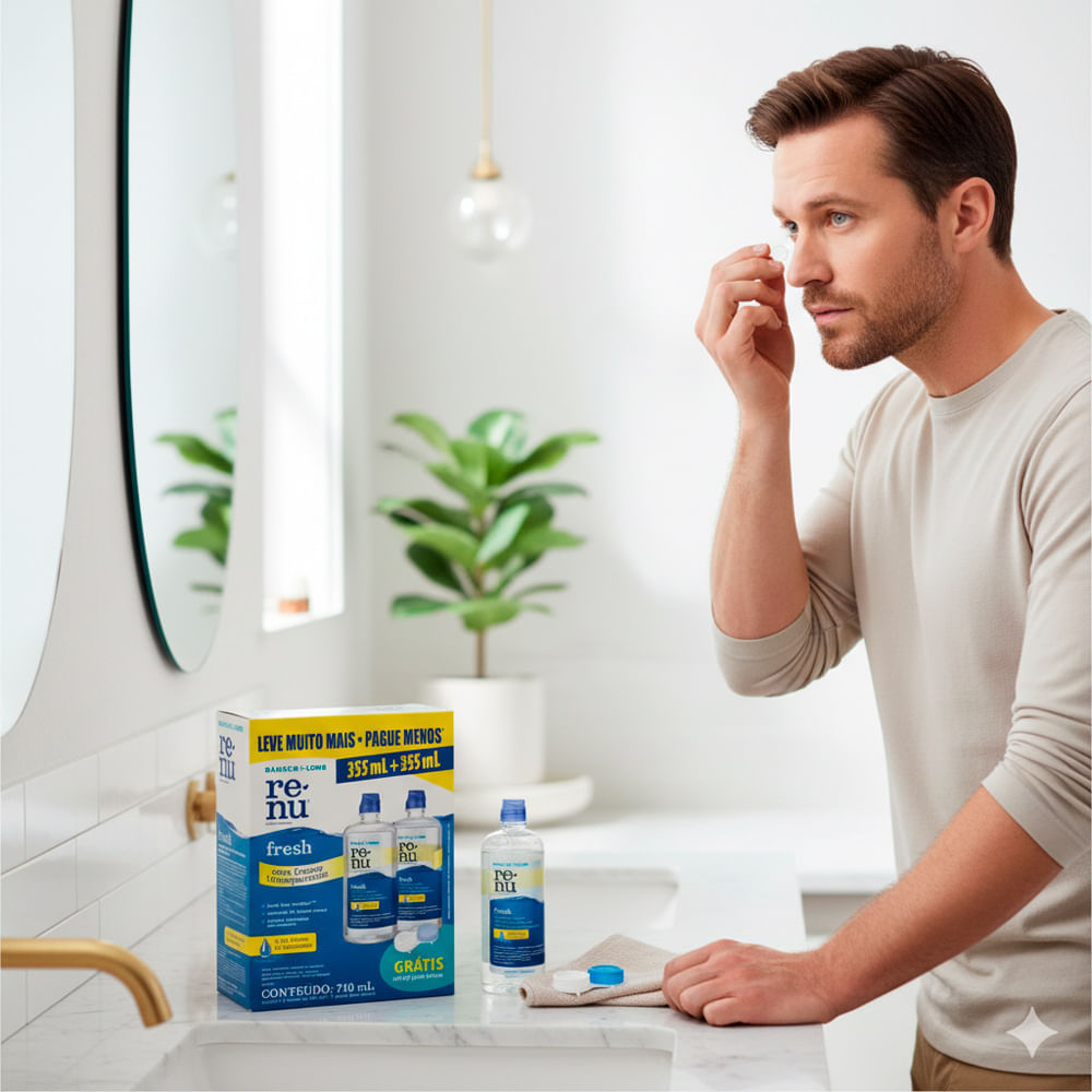 Solução Multiuso Renu Fresh - 710 ml (2 frascos) Experimente a sensação de lentes sempre novas com a solução multiuso Renu Fresh! Este pacote econômico contém 710 ml, dividido em dois frascos de 355 m