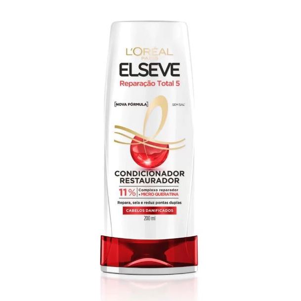 Kit Reparação Total 5 L'Oréal Paris Elseve Shampoo 200ml + Condicionador 200ml Esse kit contém: 01 Shampoo Reparação Total 5 L'Oréal Paris Elseve 200ml 01 Condicionador Reparação Total 5 L'Oréal Paris Elseve 200ml A Linha Elseve Reparação Total 5, totalmente reformulado, enriquecido com Cicatri-Ceramida identifica e cicatriza os 5 principais danos causados no dia a dia: quebra, rigidez, opacidade, ressecamento e ponta dupla. O cabelo fica reconstruído, transformado, reparado, macio e brilhante. Tecnologia: Após 10 anos de pesquisa foi criada uma nova geração de ceramida: a Cicatri-Ceramida. Em fórmulas enriquecidas com recarga ômega, a Cicatri-Ceramida age combatendo os danos desde os primeiros sinais. A fórmula tem tripla ação: 1 - Repõe dia após dia os nutrientes perdidos pela fibra; 2 - Repara a estrutura da fibra deixando os fios uniformes, selados e protegidos como se fosse uma cicatrização da fibra capilar; 3 - Desde a 1ª aplicação transforma a fibra: os cabelos são reconstituídos, ficam macios e brilhantes. Progressivamente combate os 5 sinais de danos para um efeito de Plástica Capilar. Benefícios: • Reduz a quebra • Dá brilho • Dá flexibilidade • Hidrata • Remove as pontas duplas • Recupera o cabelo